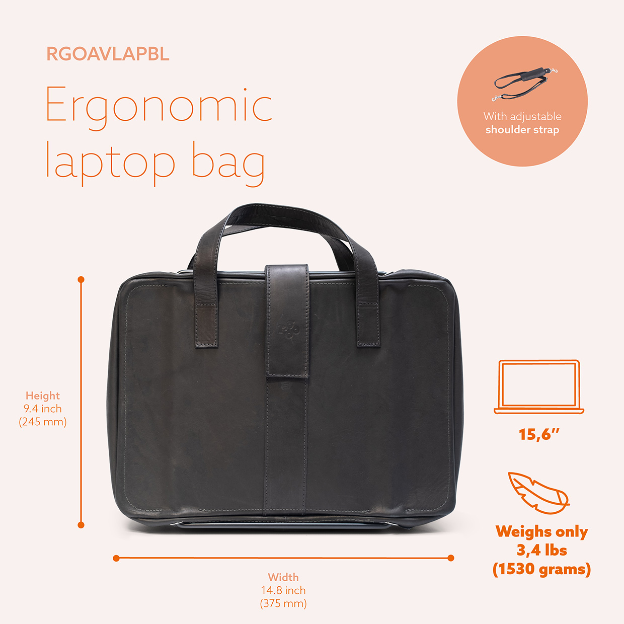 R-Go Viva sülearvutikott on ergonoomiline täisnahast kott koos integreeritud sülearvutialusega.