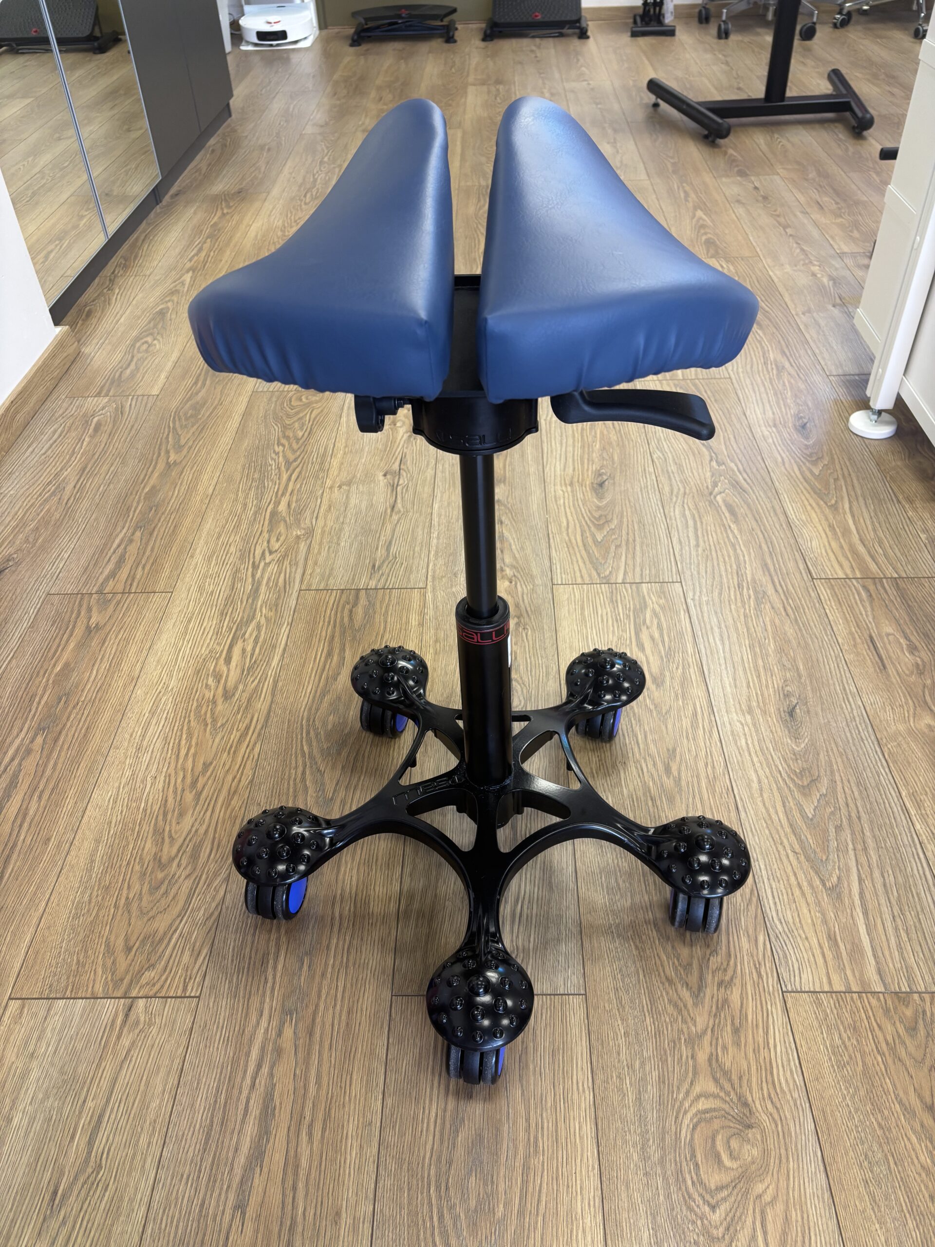 Kaheosaline sadultool pakub poolseisvat, aktiivset ja tasakaalustatud istumisasendit. Istme nurk kallutab vaagna neutraalsesse püstisesse asendisse, hoides selgroo ja ülakeha sirgena ilma lihaste pingutuseta. See võimaldab teil kogu päeva jooksul head kehahoiakut säilitada, ilma et see tekitaks kahjulikku survet genitaalpiirkonnale, tagades samal ajal kehale hea vedelike ringluse.