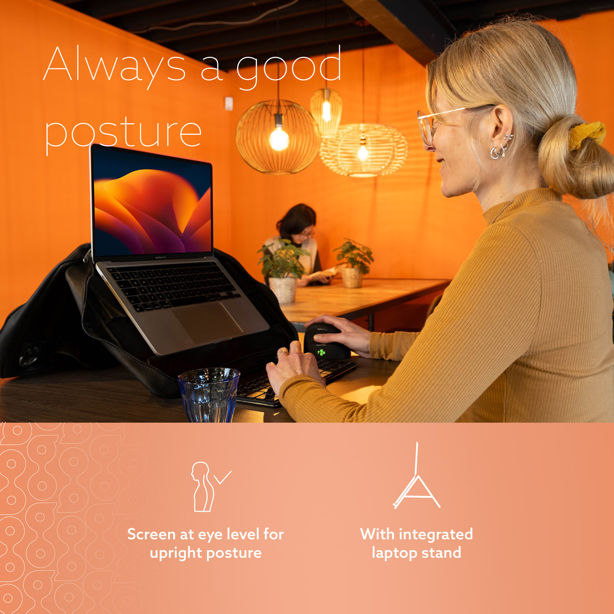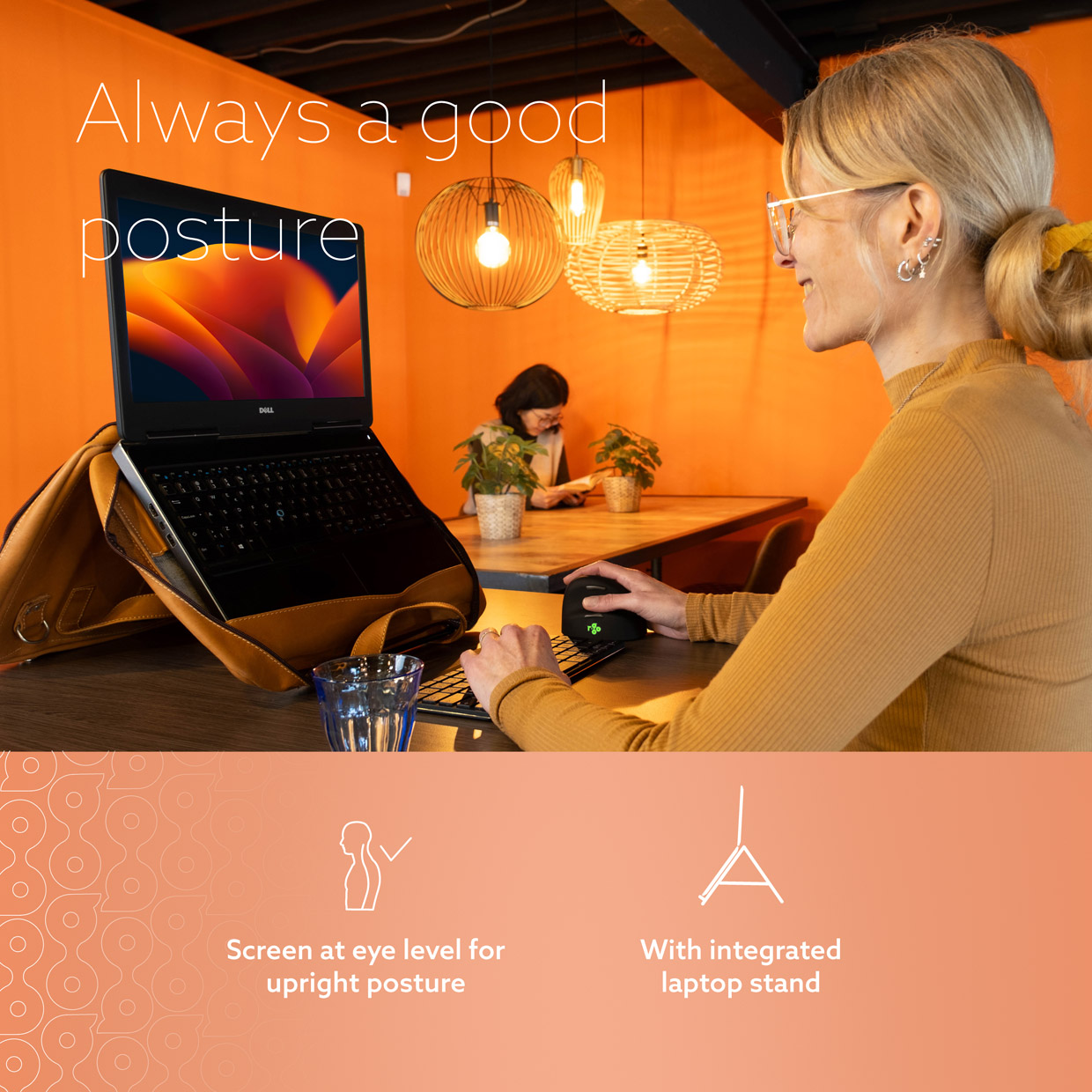 Reguleeritav sülearvutialus tõstab ekraani hõlpsasti silmade kõrgusele, võimaldades töötada igas asukohas tervislikus ja sirges asendis.